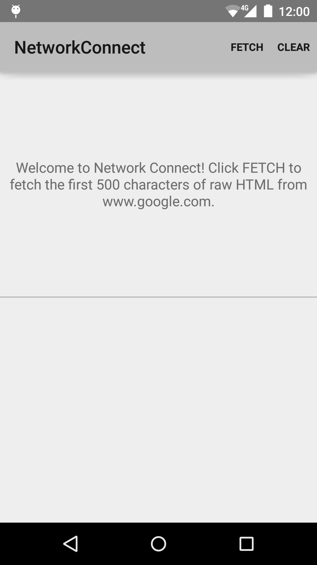 This sample demonstrates how to connect to the network and fetch raw HTML using HttpsURLConnection. AsyncTask is used to perform the fetch on a background thread.